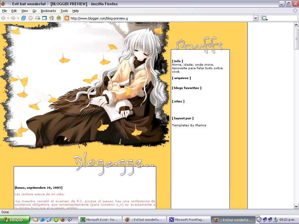 A ver!diganme que les parece este template para ponerle a mi bloggie!n_nobviamente le faltaria el tag board y el hit counter... y le cambiaría otra vez el color de la letra n_ny si lo quieren para su blog, avisenme y les paso el code :P